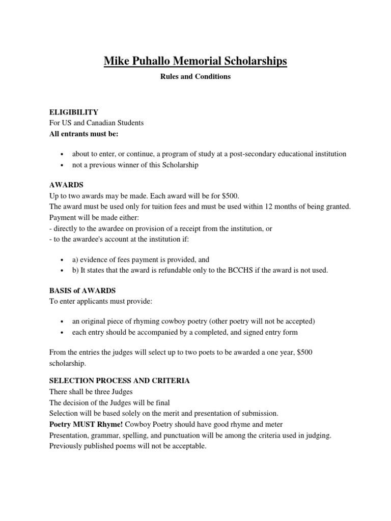 Mike Puhallo Memorial Scholarships Poetry Fiction